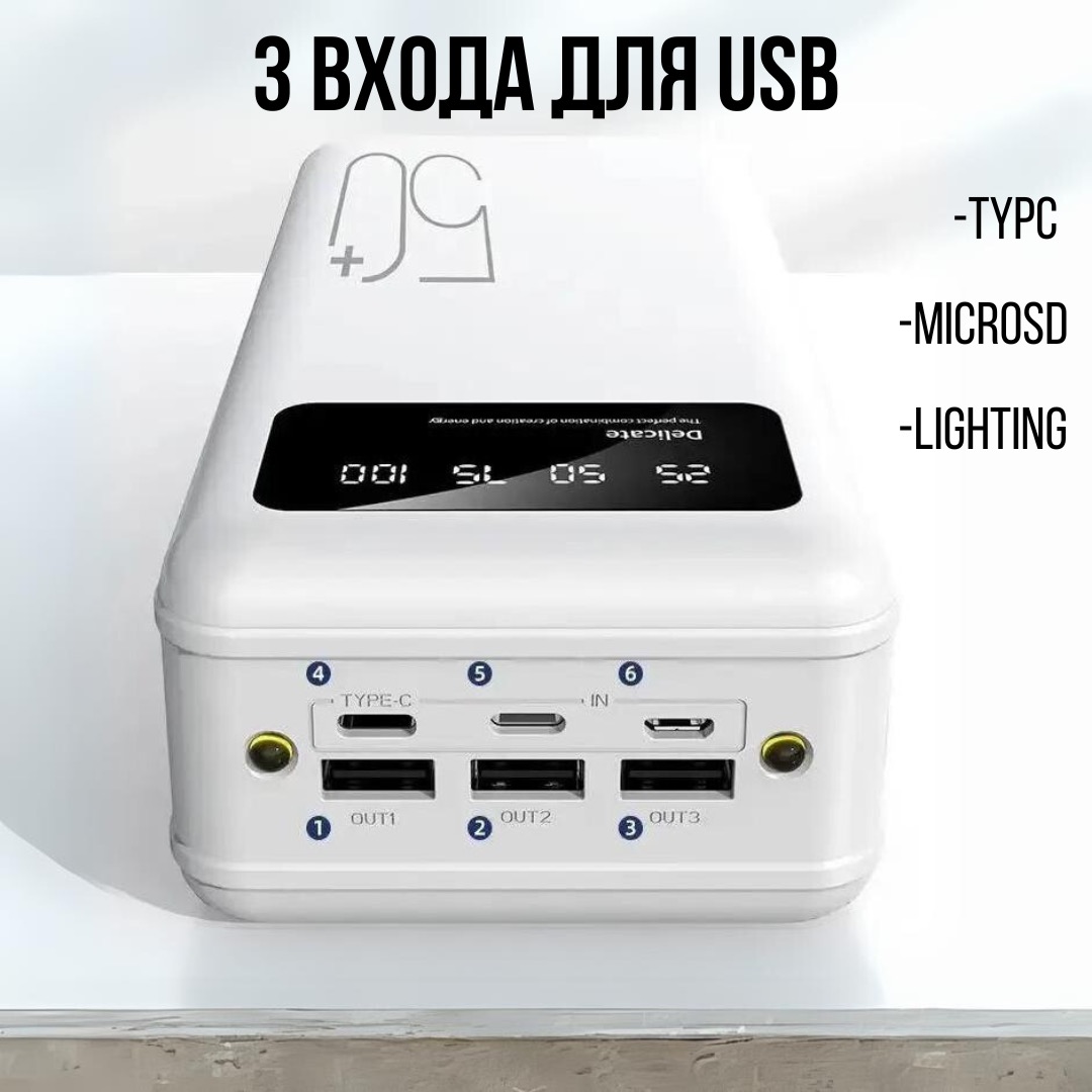 Повербанк 40000mAh с цифровым дисплеем и фонариком